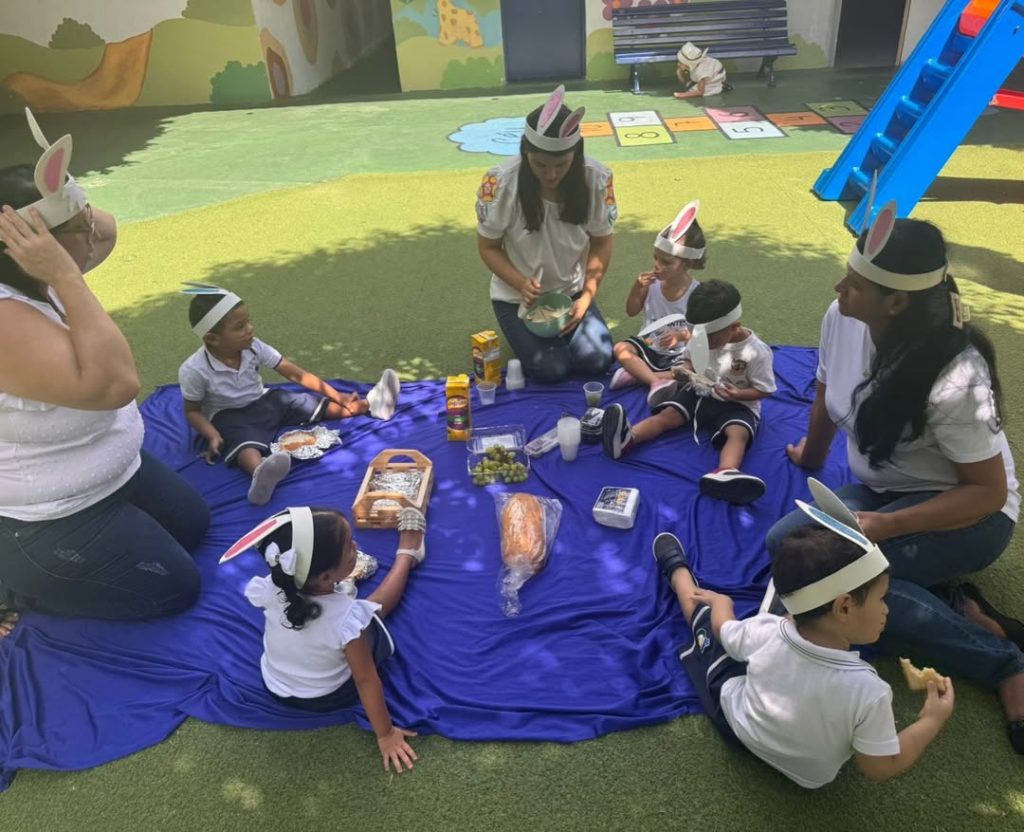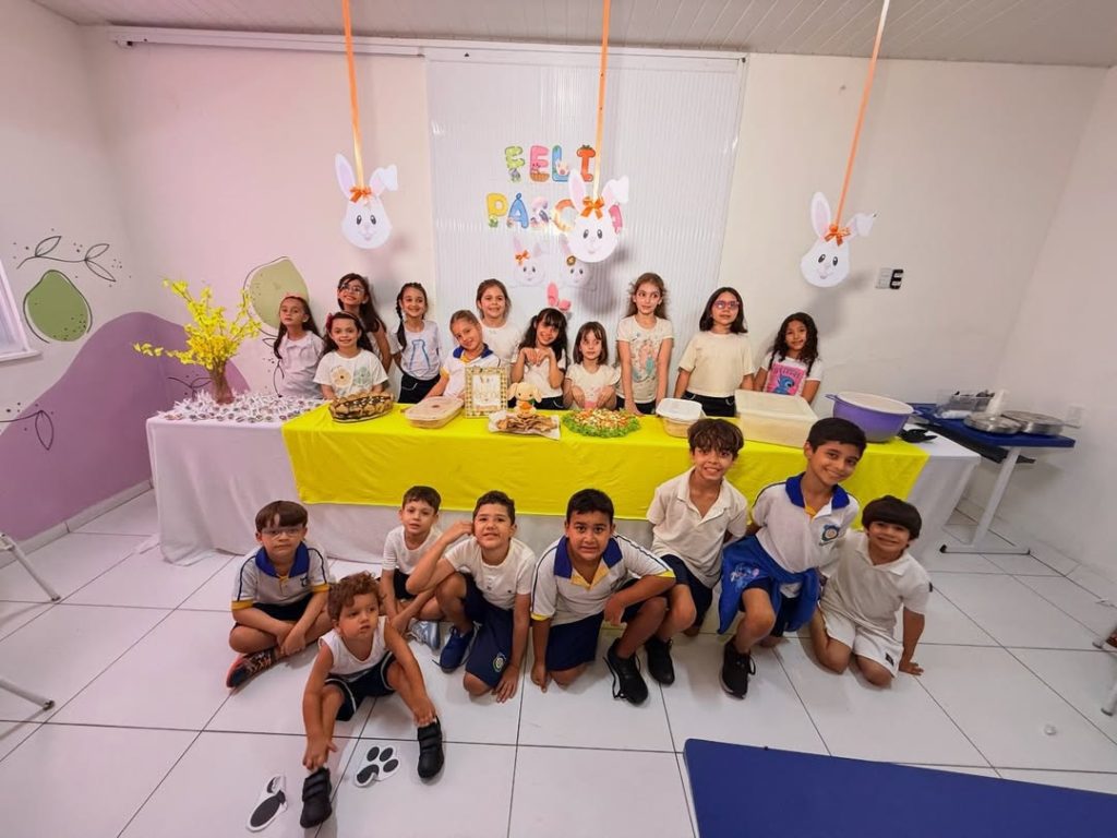 Do Infantil ao Ensino Fundamental Anos Finais, nossos estudantes participaram de lanches coletivos, incentivando a partilha e união entre as turmas. Além de apresentações musicais, artísticas e teatrais nos turnos da manhã e tarde. Uma programação leve, divertida, com muita interação e espirito de união, características que traduzem o verdadeiro significado da Páscoa.